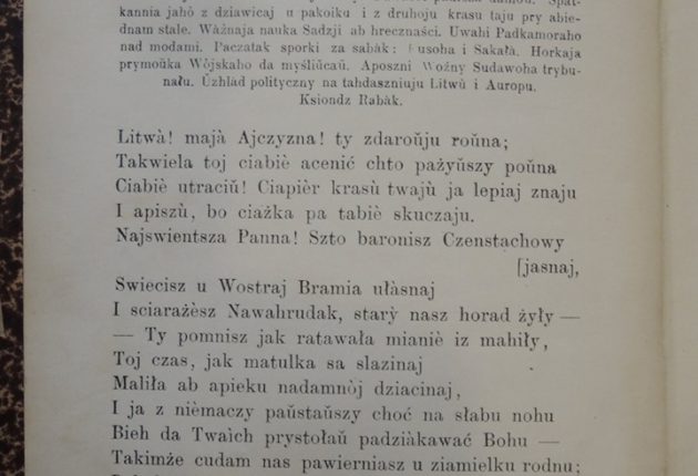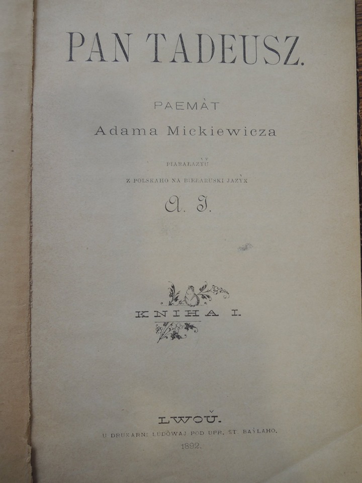 У 1892 у Львове Аляксандр Ельскі выдаў перакладзеную ім на беларускую мову першую песню паэмы «Пан Тадэвуш».