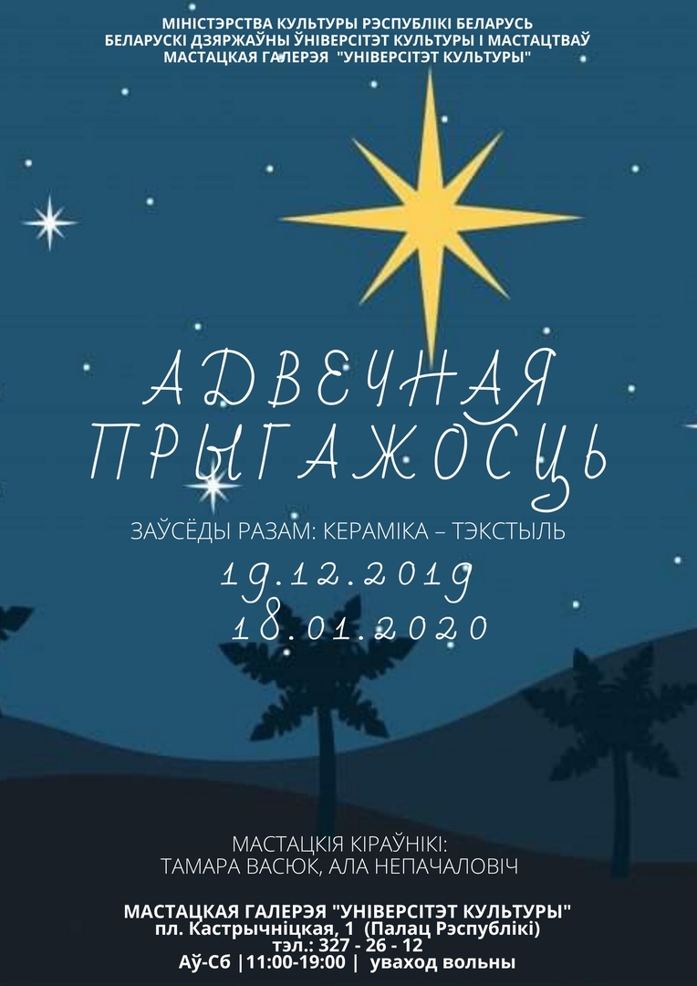 19 снежня ў мастацкай галерэі «Універсітэт культуры» адбудзецца прэзентацыя арт-праекта «Адвечная прыгажосць», які адкрывае цыкл культурна-асветніцкіх мерапрыемстваў, прысвечаных 45-годдзю БДУКМ.