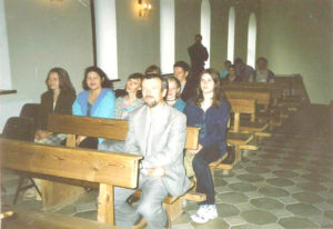 Потым на аэрадроме Чайка адбыліся дзве літургіі ў лацінскім і візантыйскім абрадах. Наша магілёўская групоўка дапоўніла агульную беларускую дэлегацыю, і мы разам арганізавана рушылі да месца, якое была прызначана для Беларусі. Побач знаходзілія сектары з пілігрымамі з Казахстана і Славакіі.