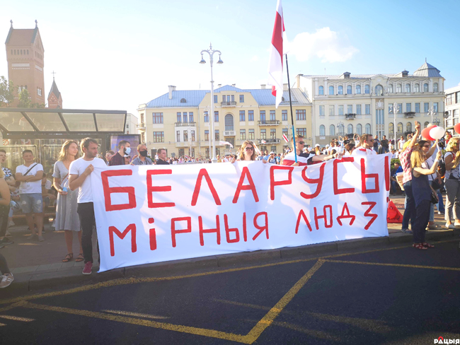 13 -14 жніўня працоўныя калектывы прадпрыемстваў па ўсёй краіне выступілі супраць ужывання грубай сілы адносна мірнага насельніцтва. На прахад-ную з патрабаваннямі выйшлі абураныя працаўнікі “БелАЗа”. Яны сустрэліся з дырэктарам прадпрыемства і мэрам Жодзіна. Работнікі МТЗ у Менску запатрабавалі вызваліць усіх затрыманых, спыніць гвалт, адхіліць Прэзідэнта і прызначыць новыя выбары. 14 жніўня тысячная калонна працаўнікоў МТЗ з плакатамі “Мы не быдло, не народец, мы – работники МТЗ, нас не 20 человек, а 16.000” крочыла па праспекце Незалежнасці сталіцы да Дома ўраду. Салідарнасць, перакананасць і рашучасць аб’ядноўваюць людзей.