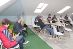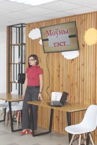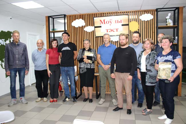 На пачатку занятка вядоўца, спадарыня Наталля Тананушка правяла моўны тэст для слухачоў, падчас якога прыйшлося наведвальнікам папрацаваць з перакладам рэдкаўжывальных беларускіх слоў.