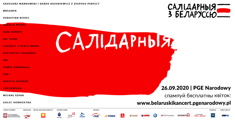 Увечары 26 верасня на Нацыянальным стадыёне ў Варшаве (Stadion Narodowy, Warszawa), самай маштабнай пляцоўцы ў краіне – адбыўся канцэрт у падтрымку беларускай дэмакратычнай супольнасці “Салідарныя з Беларуссю” (“Solidarni z Bialorusia”).