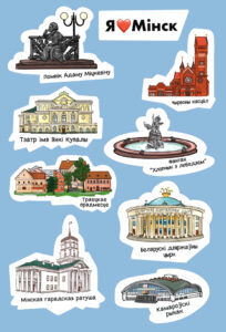 Індывідуальныя прадпрымальнікі Тамара і Сяргей Бахуны з Берасця выпусцілі чарговую беларускамоўную прадукцыю. На гэты раз – набор арыгінальных стыкераў “Я люблю Мінск”. На налепках адлюстраваны помнік Адаму Міцкевічу, Чырвоны касцёл, тэатр Янкі Купалы, Траецкае прадмесце, фантан “Хлопчык з лебедзем”, Беларускі дзяржаўны цырк, Менская гарадская ратуша і Камароўскі рынак. Кожная налепка прарэзаная па контуры.