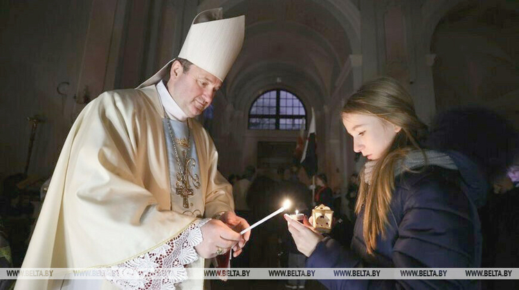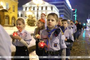 Беларускія каталіцкія скаўты даставілі ў Менск Віфлеемскі агонь. Яго сустрэлі ў Архікафедральным касцёле Найсвяцейшай Панны Марыі, паведамляе БелТА.