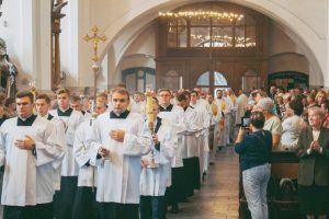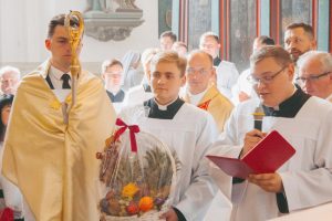 Святую Імшу разам з іерархамі канцэлебравалі святары з розных мясцін дыяцэзіі, якія 23 верасня ўдзельнічалі ў дні засяроджання ў Міждыяцэзіяльнай вышэйшай духоўнай семінарыі ў Гародні. На ўрачыстай цэлебрацыі ў галоўный святыні горада над Нёманам прысутнічалі кансэкраваныя асобы і шматлікія вернікі.