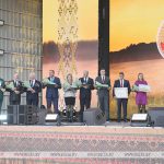 – Перш чым на гэту сцэну выйдуць героі жніва, я яшчэ раз схіляюся перад вамі, вяскоўцы, дзякую ўсім аграрыям, тым, хто ім дапамагаў у гарачую пару, за годныя вынікі. Перакананы, вы і далей будзеце прымнажаць нашы лепшыя традыцыі. Ад душы жадаю моцнага зда-роўя, дабрабыту, заўсёды добрага надвор’я. Не толькі на хлебнай ніве, але і ў вашых дамах, – сказаў Аляксандр Лукашэнка.