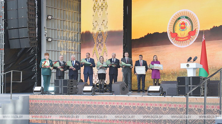 Прэзідэнт Беларусі Аляксандр Лукашэнка на абласным фестывалі-кірмашы “Дажынкі-2024” у Мастах узнагародзіў лепшых працаўнікоў вёскі Гарадзенскай вобласці.