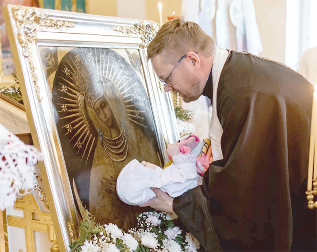 Хрышчэнне перад абразом Маці Божай Вастрабрамскай 23 мая 2025, 21:39 Грамадства 26 У Першамайскай царкве пасля фэсту адбылося хрышчэнне немаўляці перад абразом Маці Божай Вастрабрамскай. Абрад здзейсніў а. Уладзімір Камиіскі. Фота Маргарыты Снапко. Facebook Twitter Google+ VKontakte WhatsApp Telegram