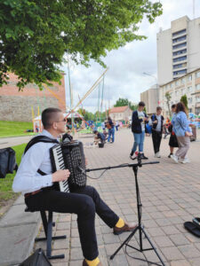 Лідскі культурна-турыстычны праект “Замкавы гасцінец” працягваецца! У яго рамках праходзяць выступленні музыкаў і паэтаў. На гэты раз, 8 чэрвеня на пляцоўцы каля Дома Валянціна Таўлая выступілі лідскія паэты Кастусь Якубчык і Людміла Русь. Яны красамоўна і пранікнёна зачыталі свае вершы, прысвечаныя роднаму краю, сваёй радзіме, а таксама гучалі творы на дзіцячую тэматыку.