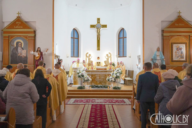 Кульмінацыяй стала святая Імша, якую ўзначаліў спецыяльны пасланнік Папы Льва XIV кардынал Клаўдыё Гуджароці, Прэфект Дыкастэрыі па справах Усходніх Касцёлаў. Прадстаўнікі беларускага епіскапату ў поўным складзе, а таксама шматлікія святары з Пінскай дыяцэзіі і прадстаўнікі з усіх дыяцэзій Беларусі, апранутыя ва ўрачыстыя арнаты, чакалі высокапастаўленага госця, заняўшы свае месцы ў прэзбітэрыі.